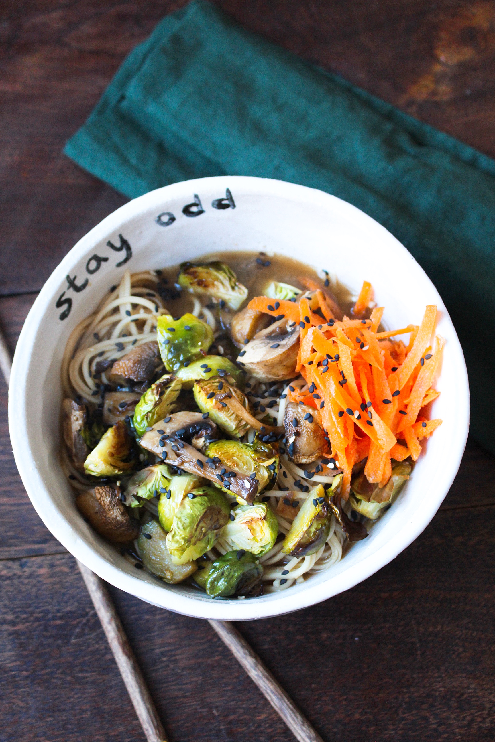 Sesame Miso Ramen With Mushrooms Broccoli Carrots And Brussels Sprouts Oddbox